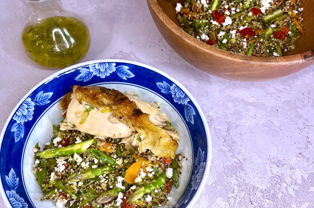 Don’t forget the protein, add chicken, salmon, or even a fried egg! This quick and easy grain harvest salad will keep you full and satisfied throughout the day.