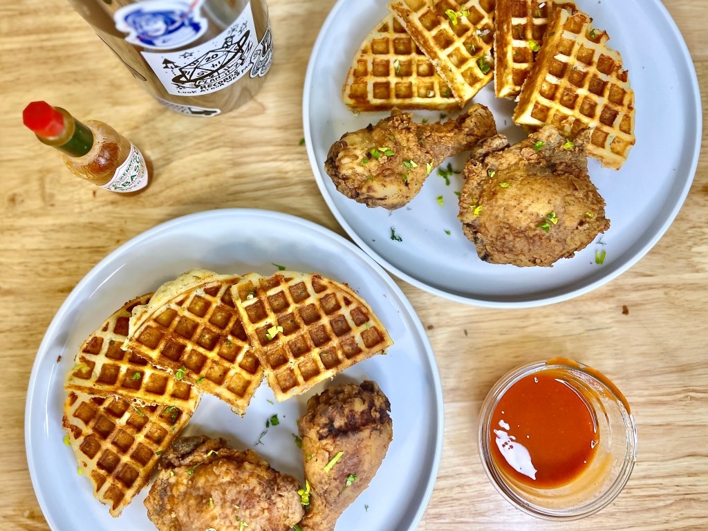 When it comes to frying chicken cook like pieces together, and be sure to not over crowd the pot. The chicken pieces should be able to freely move around in the pot. This may mean cooking in batches and that’s ok! Turn the oven to 200F and put cooling rack with cookie sheet with fried chicken to keep warm.