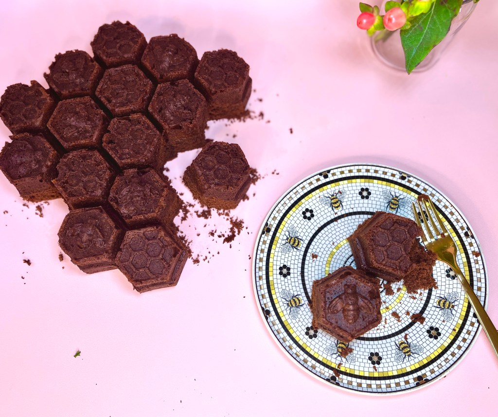 - Preheat the oven to 350 degrees. Prepare your preferred cake pan, which should hold at least 10 cups of batter. (I used a Nordic Ware honeycomb pan.) Butter and flour the pan if necessary. Set aside.