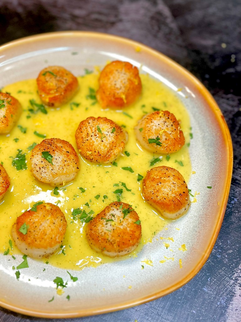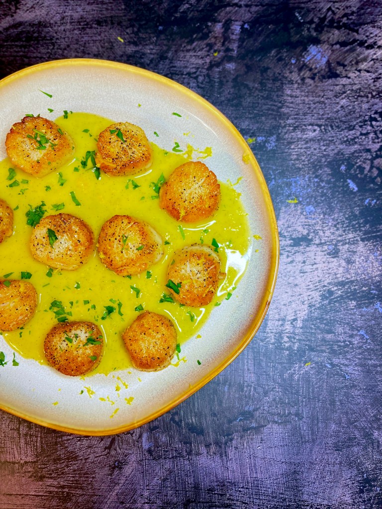 Getting golden brown scallops can feel almost impossible has a home chef. If you’re like me there was probably 2 rights and one wrong that just wouldn’t get you the golden sear you’re looking for. There are three things that I found help me achieve the perfect sear.