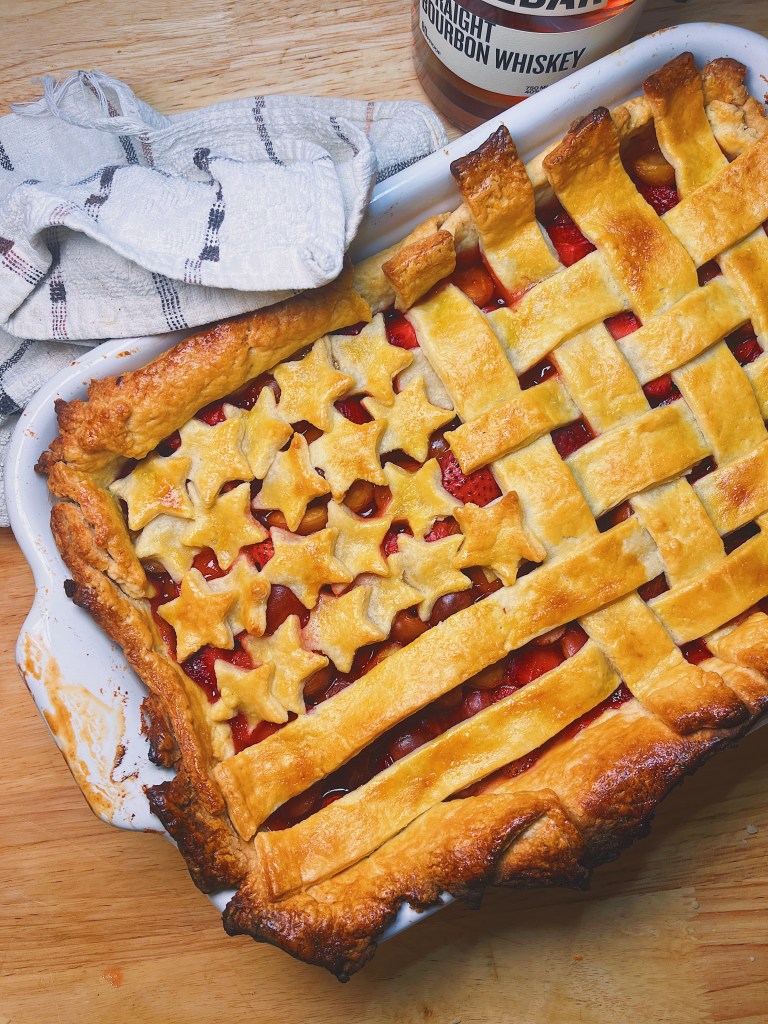 - Prep the filling: In a large bowl, combine cherries, strawberries, sugar, salt, cornstarch, lemon juice and bourbon. Macerate for 15 to 20 minutes. In the meantime, remove your dough from the fridge and let it sit at room temperature so you can begin working it.