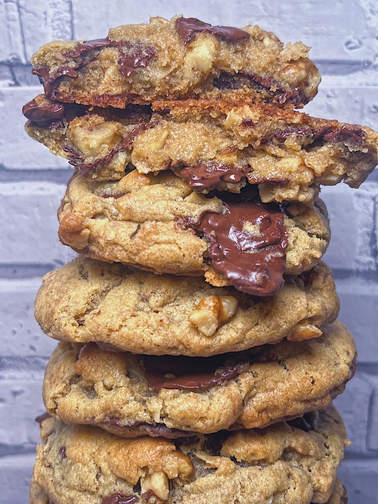 Inspired by a lifetime of shared pints and late-night TV, this recipe is a decadent tribute to my mom and arguably the most dangerously delicious thing to come out of my kitchen. The secret lies in the brown butter banana base—a pairing that offers a deep, nutty complexity far beyond your average chocolate chip cookie. Each bite is packed with heavy-duty chocolate chunks and a hit of walnut, creating a bakery-style experience that has literally prompted friends to risk food allergies just for a taste. If you’re looking for a soft, chewy cookie that hits every nostalgic note with a modern, gourmet edge, these are the ultimate treat.